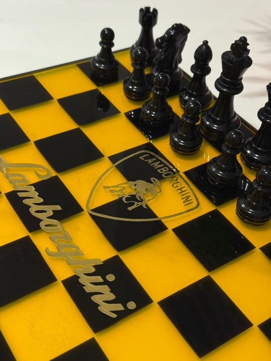 Chess Board Set Lamborghini Game yellow and black