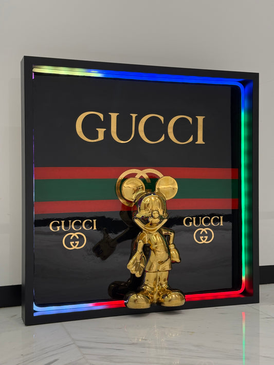 Golden Mickey in Gucci Box Frame with Light – Luxury Art That Shines