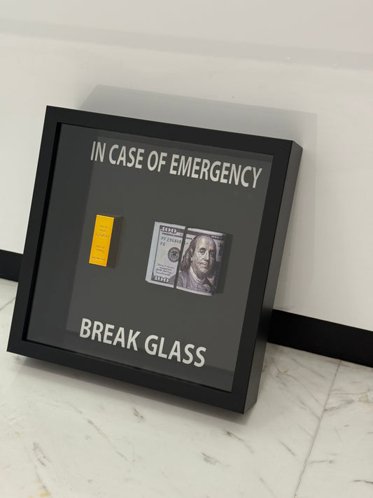 In Case of Emergency - Break Glass Luxury Dollar Stack & Gold Bar Box Frame – Wealth in Art