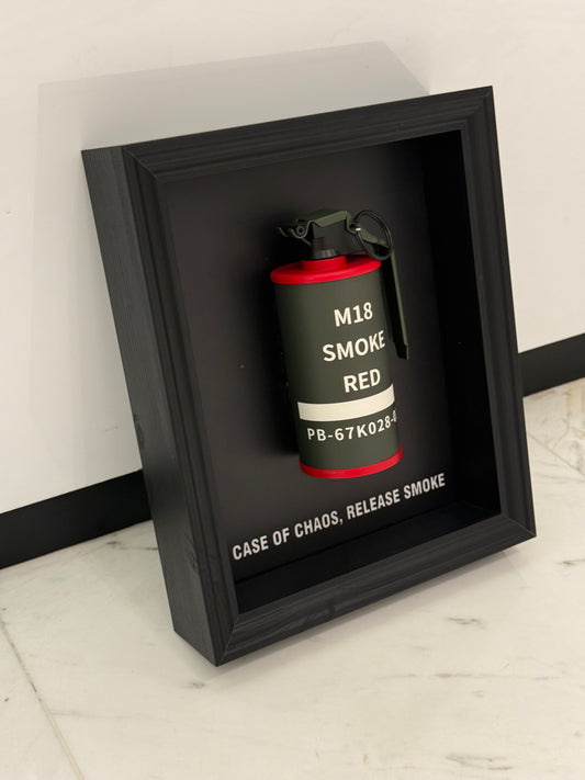 Smoke Grenade Statement Box Frame – Controlled Chaos, Captured in Art