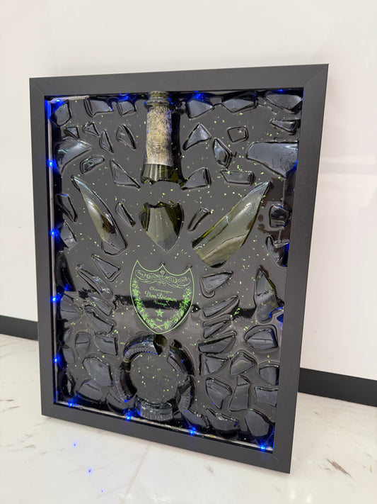 Dom Perignon Champagne with LED Light Broken Bottle Art Frame