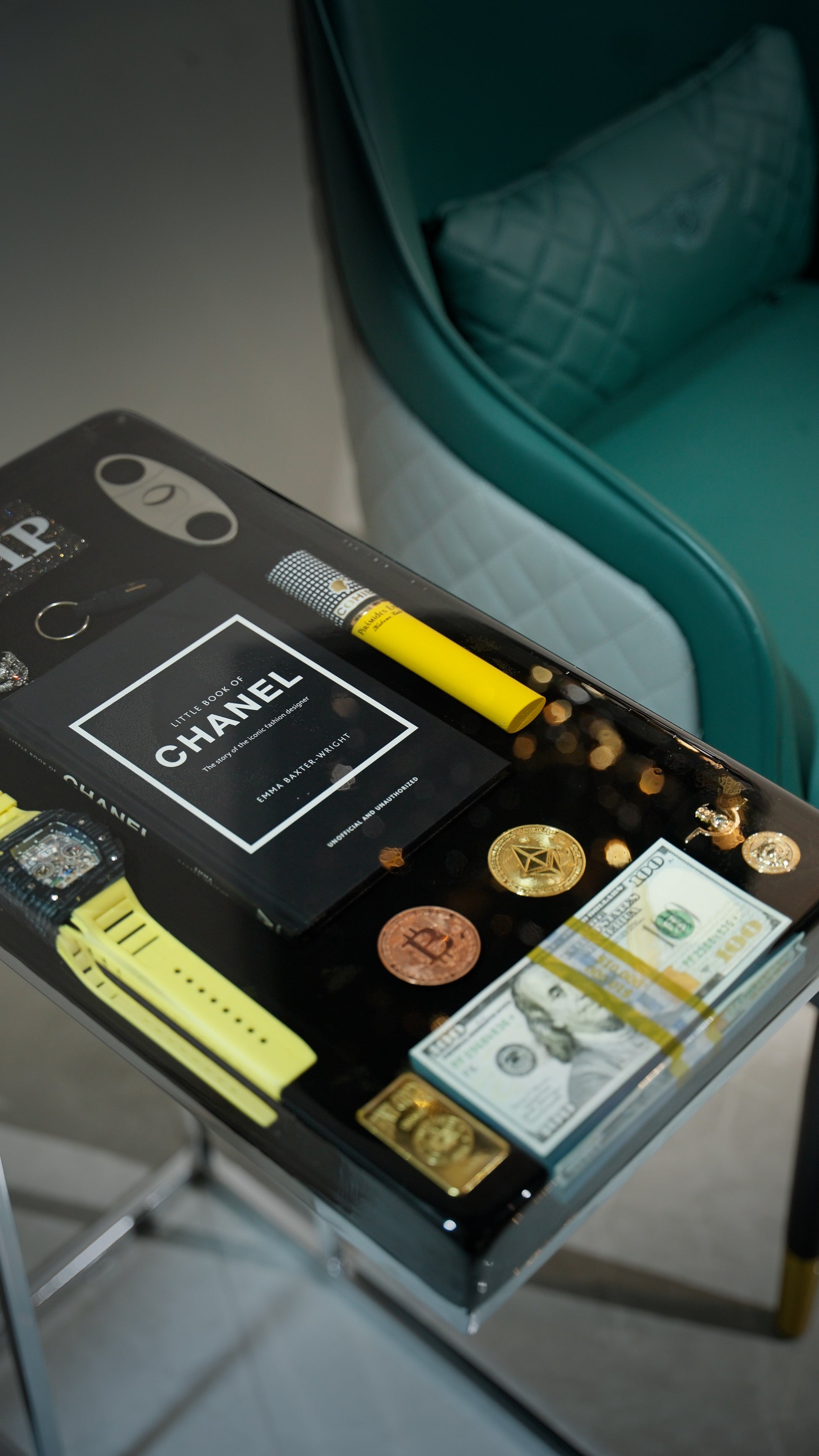 Chanel Book and Richard Mille watch Square Side Table