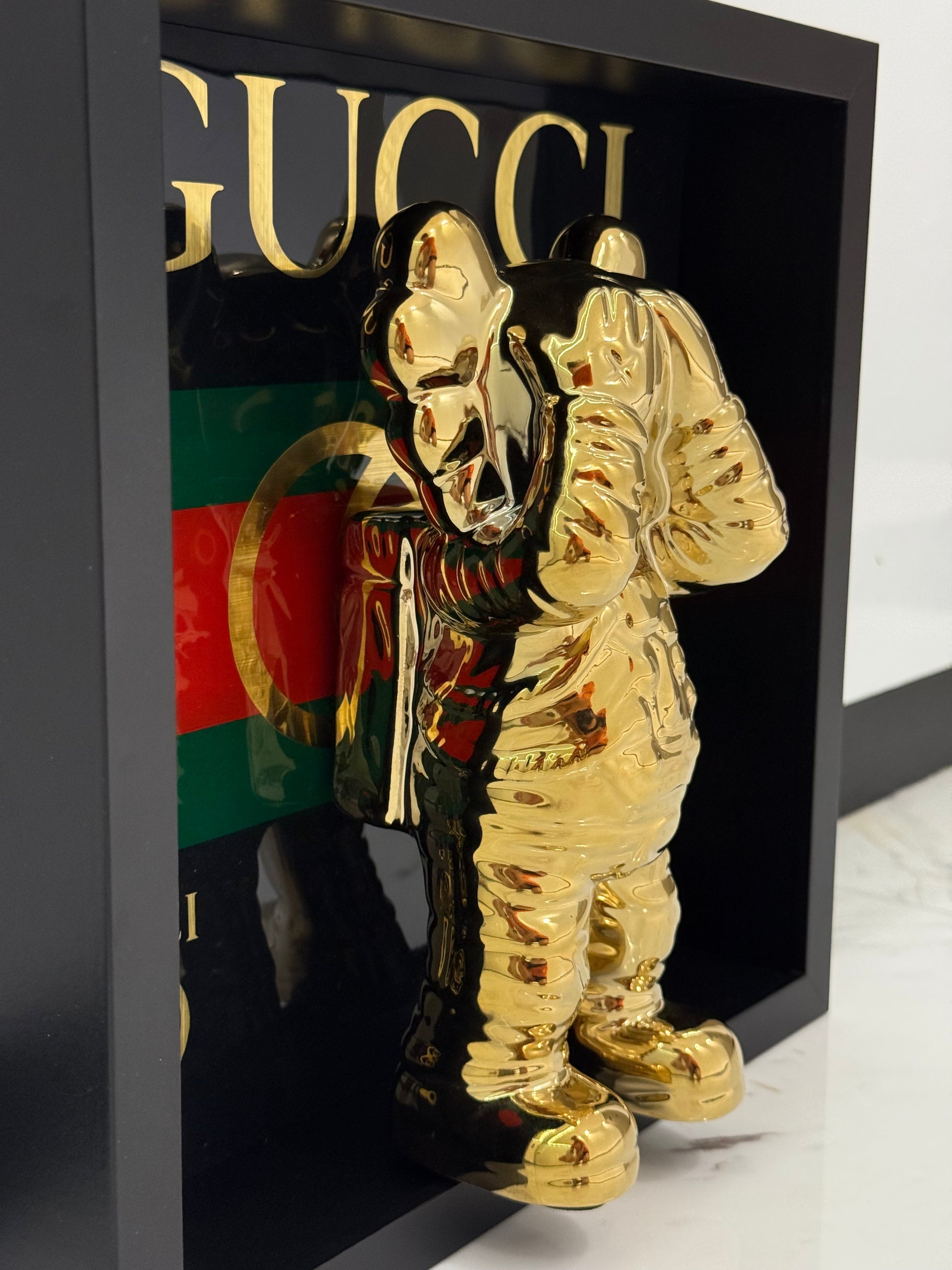 Gold Astronaut in Gucci Box Frame – Luxury Art Meets Iconic Fashion