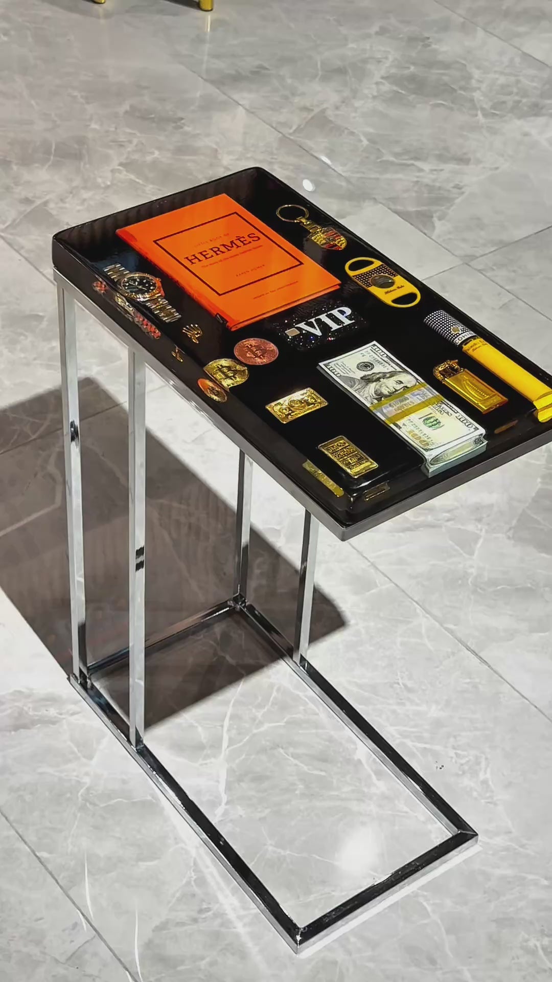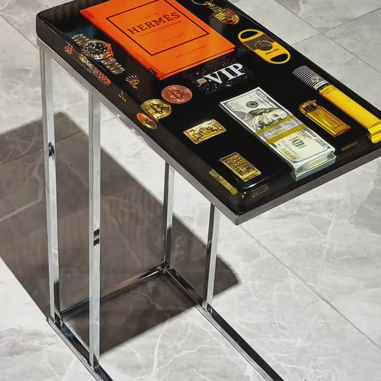 Transform your space with our unique Table. A luxury self-made piece that adds a touch of elegance to any room. Handcrafted with care and attention to detail, this one-of-a-kind artwork is sure to be a conversation starter. Elevate your interior with this stunning and exclusive piece.
