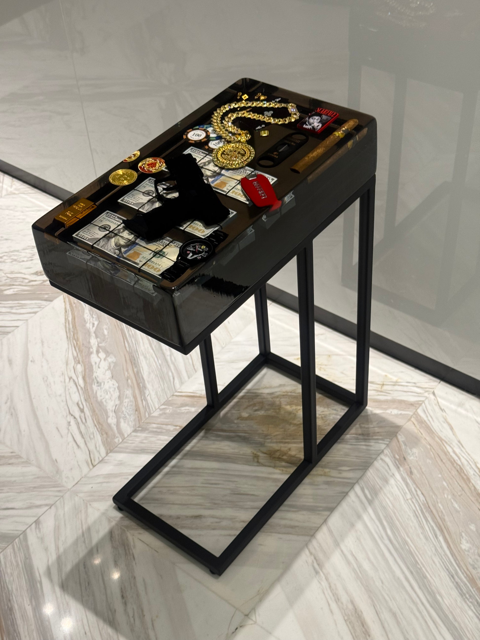 Step into a world where ambition, risk, and reward collide. The King of the Game Table is not just furniture — it’s a bold statement of dominance and success. Designed with embedded luxury elements including stacked cash, poker chips, gold bar, statement chain, premium cigar, watch, iconic card symbols, and powerful detailing under a sleek glass surface, this handcrafted table captures the mindset of those who play to win. Every detail reflects confidence, status, and the hunger for the top seat at the table.
